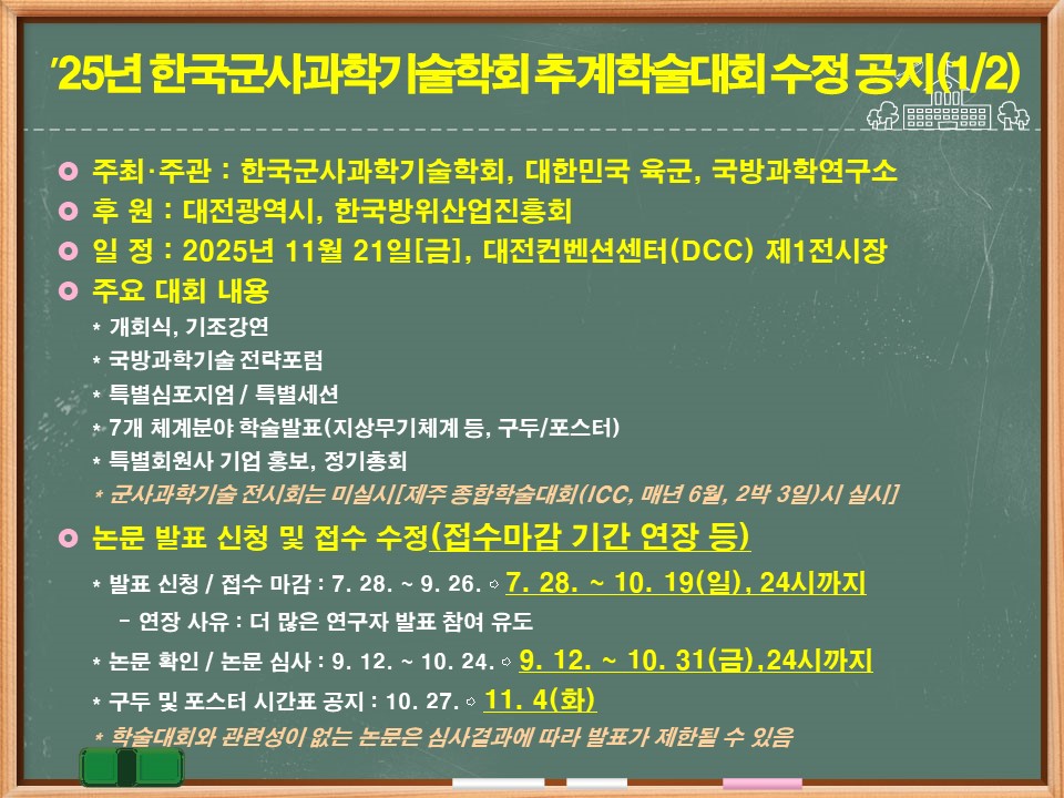 25년 추계학술대회 논문발표 신청 및 접수마감 기간 연장 관련 추가 공지