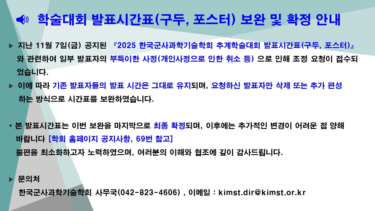 파일첨부 슬라이드1.jpg6._25년_추계학술대회_발표_논문_시간표(구두_및_포스터),_학회_공지용(20251112)최종.cell6._25년_추계학술대회_발표_논문_시간표(구두_및_포스터),_학회_공지용(20251112)최종.nxl6._25년_추계학술대회_발표_논문_시간표(구두_및_포스터),_학회_공지용(20251112)최종.pdf6._25년_추계학술대회_발표_논문_시간표(구두_및_포스터),_학회_공지용(20251112)최종.xls