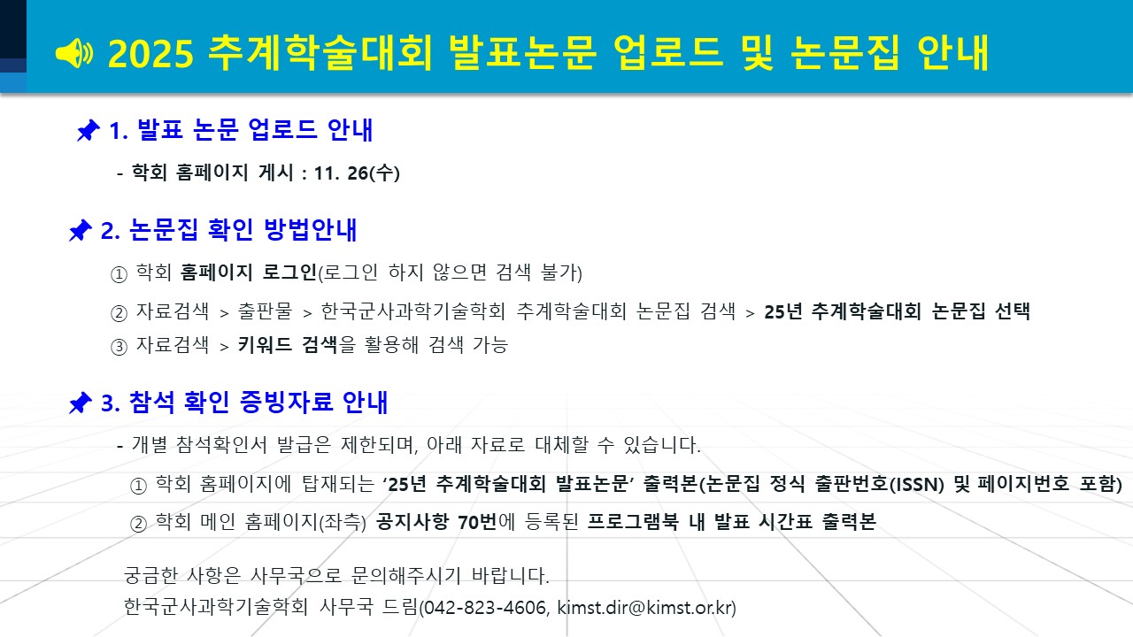 25년 추계학술대회 발표 논문 업로드 및 논문집 안내